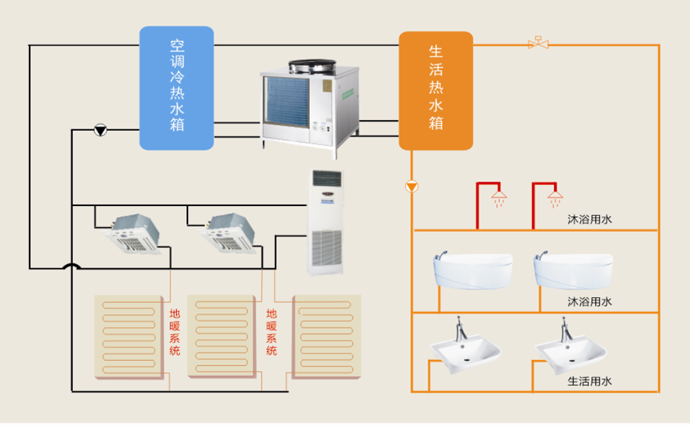 華源空氣能采暖系統(tǒng),將空氣能熱泵與家用地暖或者風(fēng)機(jī)盤(pán)管(立式或者吊頂)相結(jié)合,提供所需熱量,另外系統(tǒng)產(chǎn)生的熱水可用于家庭洗浴、生活用熱水的供應(yīng),實(shí)現(xiàn)冬季采暖與全年熱水供應(yīng)的結(jié)合,建造全套家庭(單位)熱水中心。