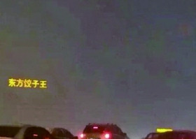 濃霧中,街道上的能見度不足百米,前方建筑已蹤跡全無,只剩一商家的5個霓虹燈大字孤零零地“懸”在空中,網(wǎng)友調(diào)侃,“天空飄來五個字:東方餃子王”。