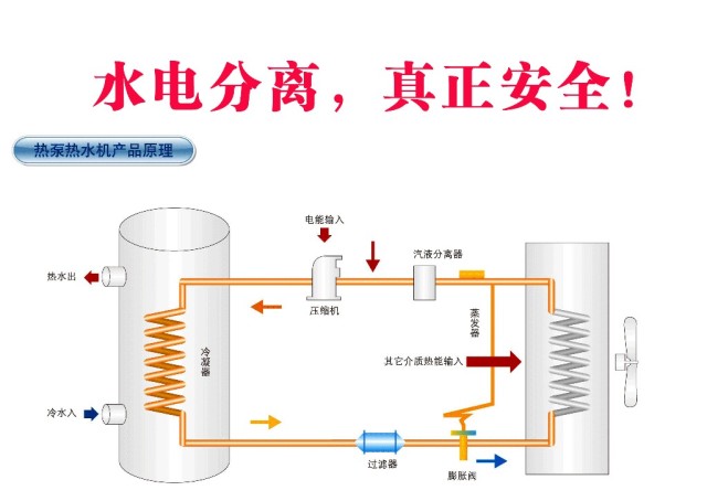 那么,區(qū)別于燃?xì)庀丛?,空氣能熱水器真正做到了水電分離,安全性能更好,帶給消費(fèi)者更加舒適的使用體驗(yàn)。空氣能熱水器的發(fā)展至今已經(jīng)經(jīng)歷了數(shù)十年的歷史,只不過真正以獨(dú)立的熱水器形式進(jìn)入到大家的生活中則是近十多年的事情。早期的空調(diào)配置,在制冷系統(tǒng)中安裝上電磁四通閥門(又稱作換向閥),通過四通閥門切換方向,改變制冷劑的流動(dòng)方向,空調(diào)就可以制熱??諝饽軣崴饕彩且源卧?,壓縮機(jī)排除的高溫高壓蒸汽狀的制冷劑流向保溫水箱里的冷凝器,將熱量傳送給水箱中的自來水并且進(jìn)行加熱。熱泵熱水器通過吸收室外空氣中的熱量,電帶動(dòng)壓縮機(jī)進(jìn)行換熱工作,比單獨(dú)的使用電加熱熱水器更加節(jié)能省電,節(jié)能可達(dá)到75%以上。